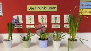 Nachdem die Kinder viel über die Frühblüher gelernt haben, durften sie täglich das weitere Wachstum beobachten. Jeden Morgen war die Freude groß, wenn sich eine neue farbenfrohe Blüte zeigte.