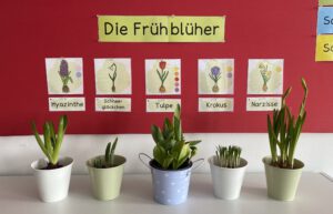 Nachdem die Kinder viel über die Frühblüher gelernt haben, durften sie täglich das weitere Wachstum beobachten. Jeden Morgen war die Freude groß, wenn sich eine neue farbenfrohe Blüte zeigte.